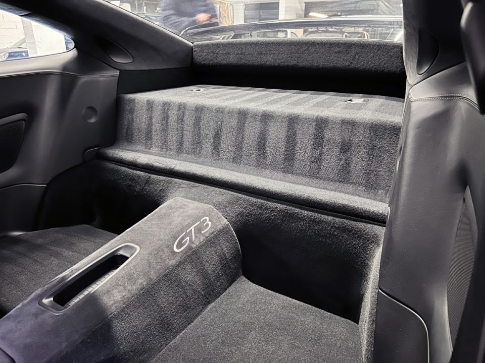 | Monogramme "GT3" sur les baguettes de seuil de porte, le compte-tours et à l'AR brodé |